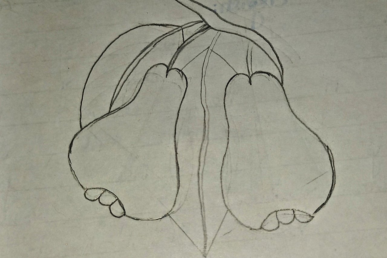 After drawing the apple, I filled it with beautiful colours like red on the inside of the apple, green on the leaves, and brown on the branch, and then my drawing was complete.