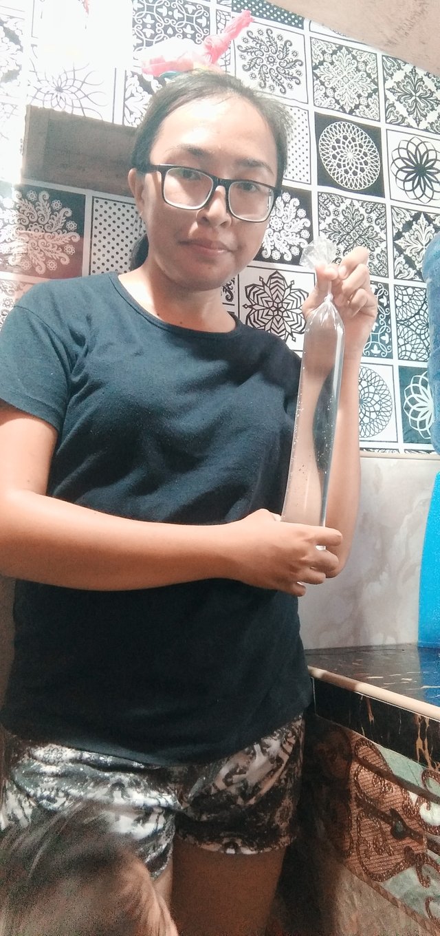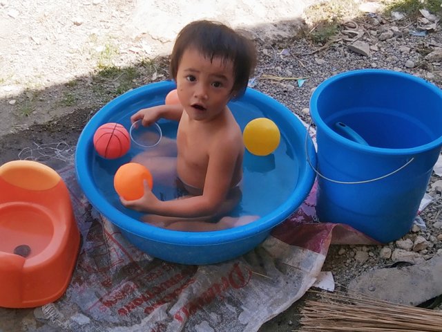When we got home, my daughter feels sticky and hot, she wants to play with water, we let her. Using a small basin with full of water, she played inside.When dinner came, we had it at home cooking some viand.