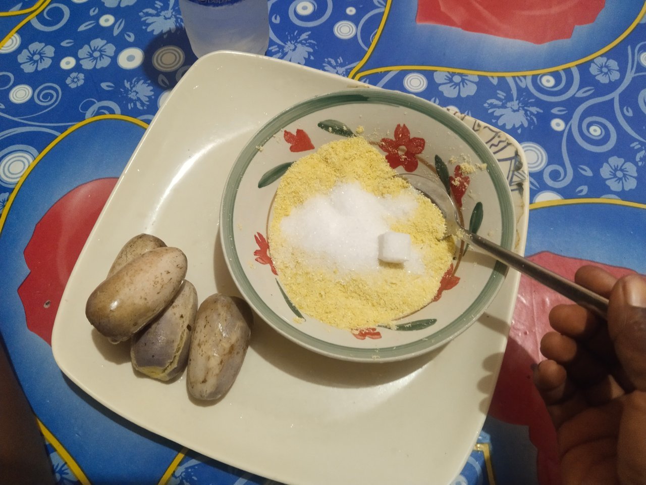 Then I went into the kitchen to prepare my dinner, since I was tired I couldn't removed soup from the freezer to defroze because there was not time to waste on that, rather i boil water and pressure my local pear and used it in drinking garri for my dinner.