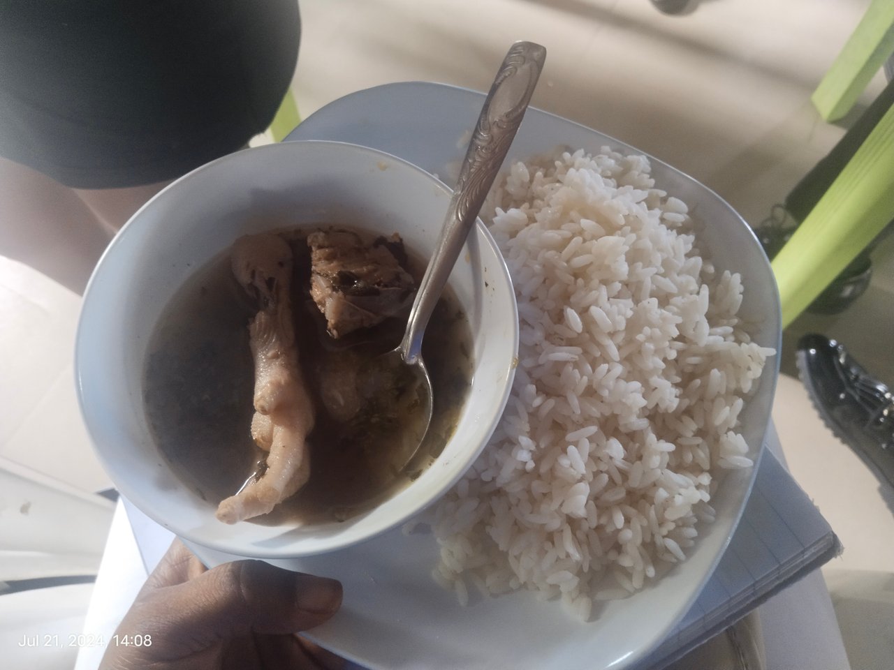 Photo section of us eating white rice and chicken pepper soup The youth president singlehandedly made provisions for all the jollification that we had.