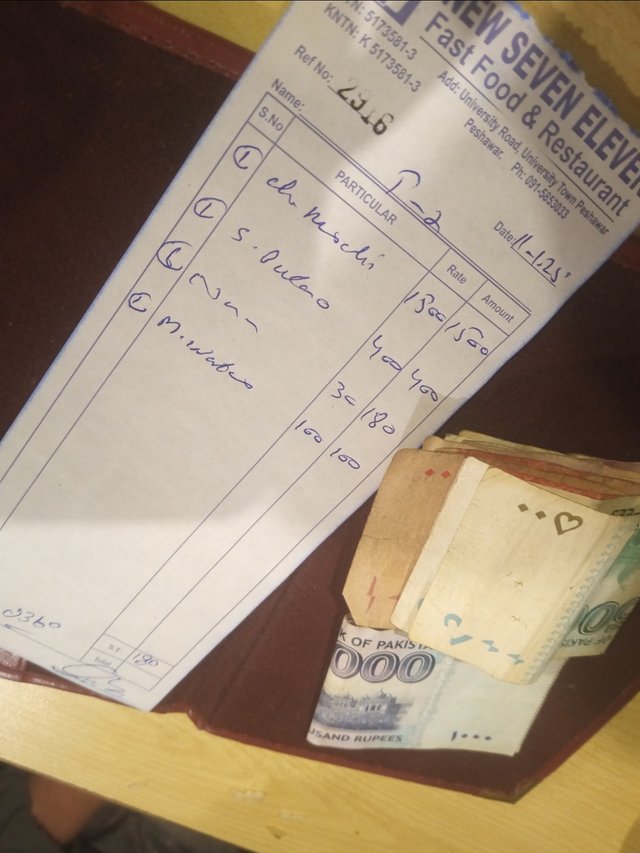 At this, the Bill also comes which was about 2300 Pkr.We all give money half-half not equally but we gave as much as we have.When the money was ready then we give that to waiter and come outside from the Resaurent.