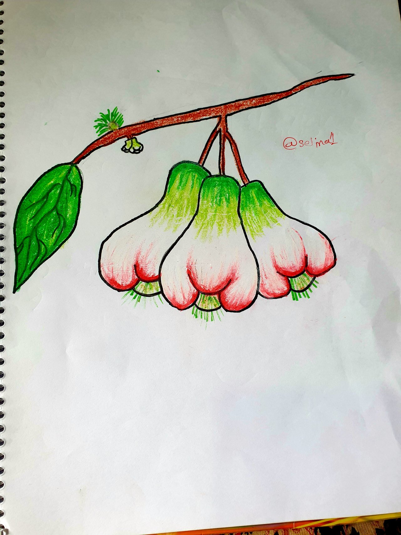 Now I will cut the spots with black color pencil in this whole drawing. Then I will paint it. My Java fruit drawing is done.