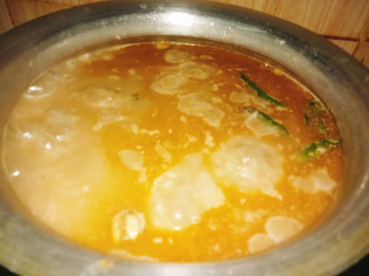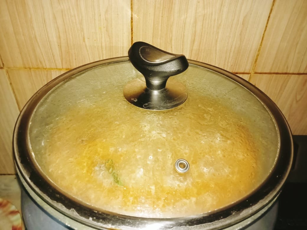 After giving hot water, I added some green chilies and a cup of milk. Then I mixed all the ingredients with a spoon. I covered the mouth of the pot with a lid.