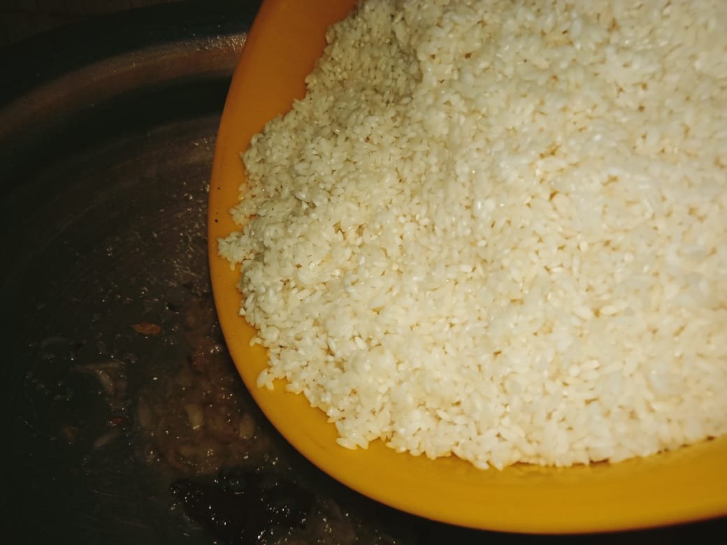 Shake the rice well and cook it for 10 minutes. While frying the rice, add some raisins and some salt. When the rice is fried, add hot water.