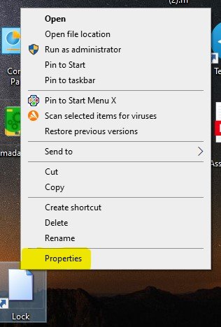 Step 5: On your desktop, you should now see a Lock Shortcut icon. Select 'Properties' from the context menu when you right-click on it.