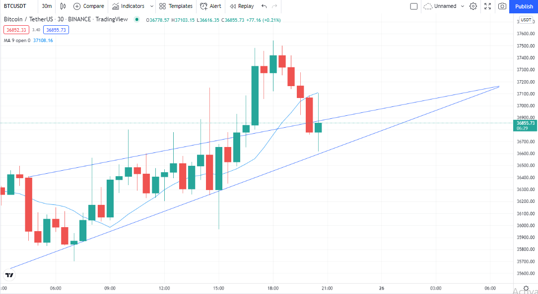 It's been a long time since I visited the Tradingview website. I remember I added an indicator and a pattern on the BTC/USDT crypto pair price chart to study the trend of the market or emotions of traders as it drives the trend of cryptocurrencies. I opened this site and saw that there was a break in the resistance, which indicates that traders could have placed their buy entry points.