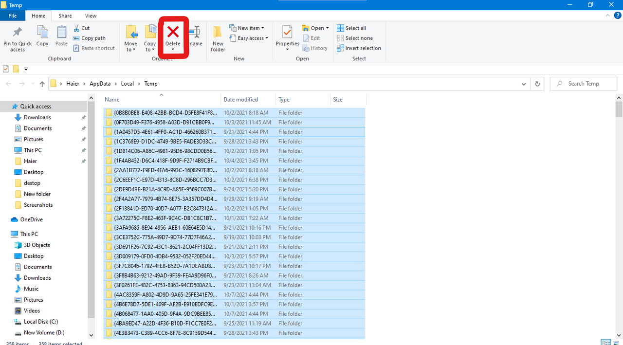 After clicking all temporary files are show simply select all files and delete