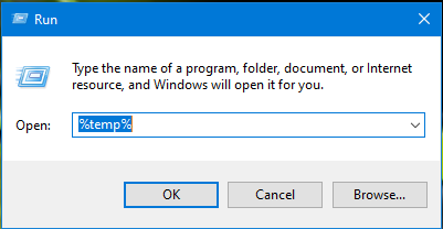 After open the run command now you type the following command "%temp%" and click enter