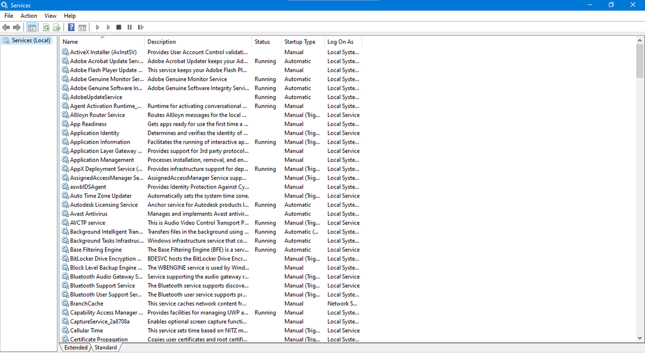 this is very easy process to ON the updates there are some following steps as you follow because all window setting are same. first you ON your pc and go to taskbar and click the option search and search the " service" and click on it this type of interface show. you can see many options on your screen.