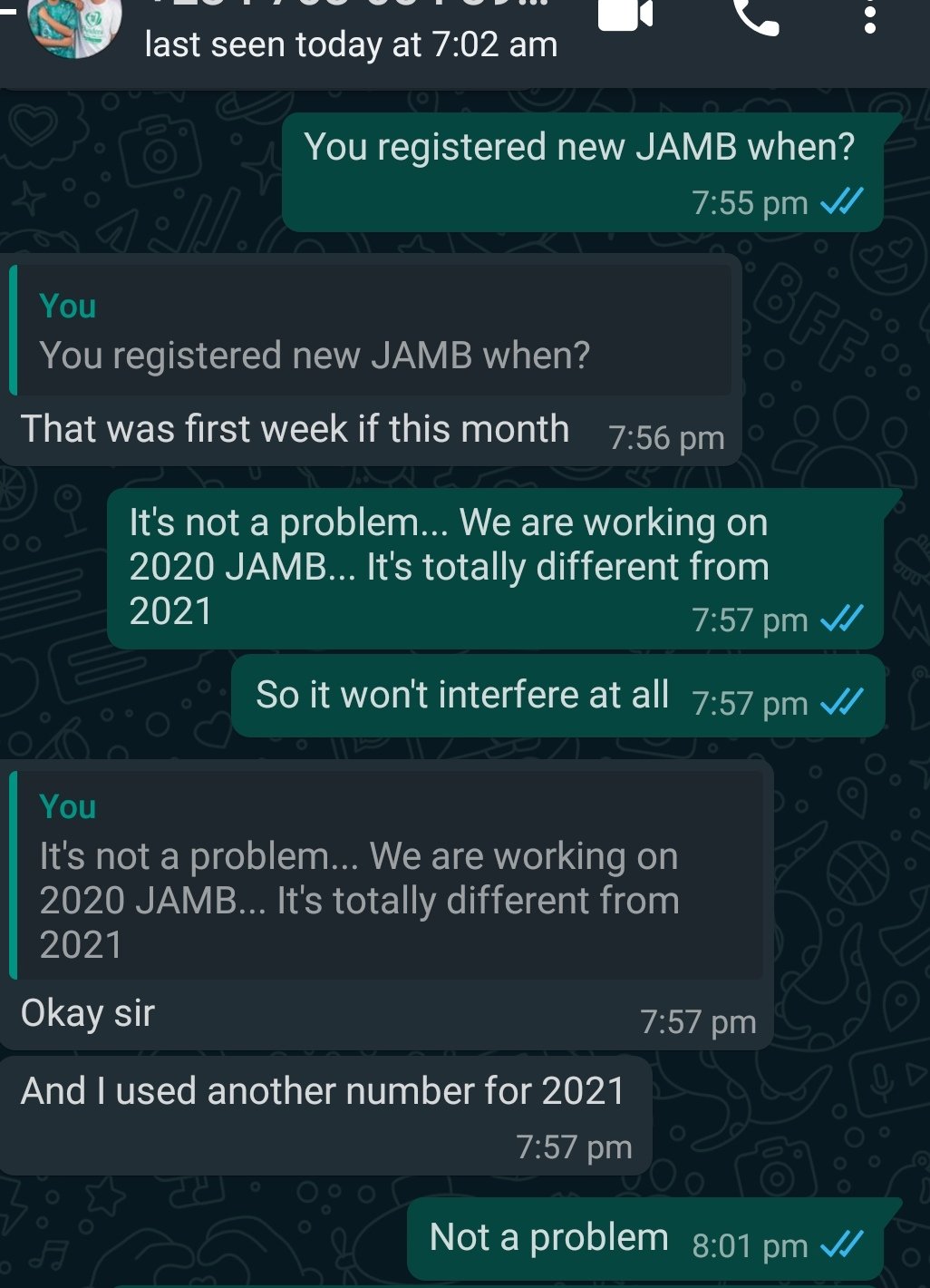 - The second person had gave up already for this year's admission and had registered for another, but then I came across him and had to do my best to correct the reason why he losses admission! The Voice Note he sent when the goodnews came was full of thanks and excitement. I love it😍