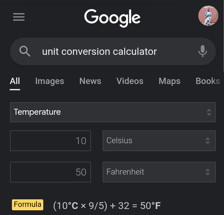 The google search bar can also be used to convert units of temperature, and as seen above, I converted from Kelvin to fahrenheit and also from celcius to fahrenheit.