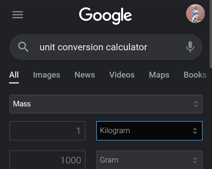 From the first screenshot on the left hand side, I made a conversion between kilogram and grams.