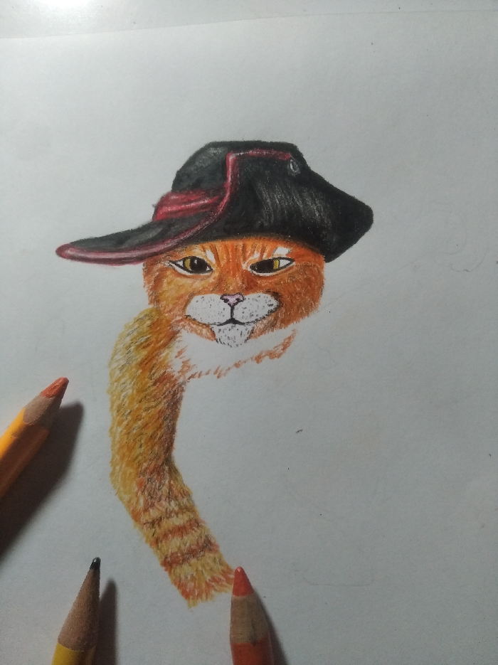 El actor quien le da esa voz tan encantadora y divertida al persona es: Antonio Banderas quien tiene reconocimientos por actor, actor de voz, productor director y empresario de nacionalidad española. Sin más explicaciones sobre este personaje y las películas procedo a mostrar el paso a paso de mi dibujo.
