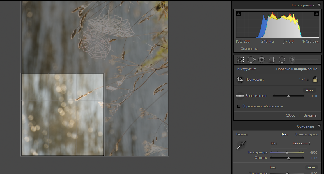 Обрезка исходника ради выделения объекта "паутина" от @lllll1ll. Объект перемещён в центр. Коррекция экспозиции.