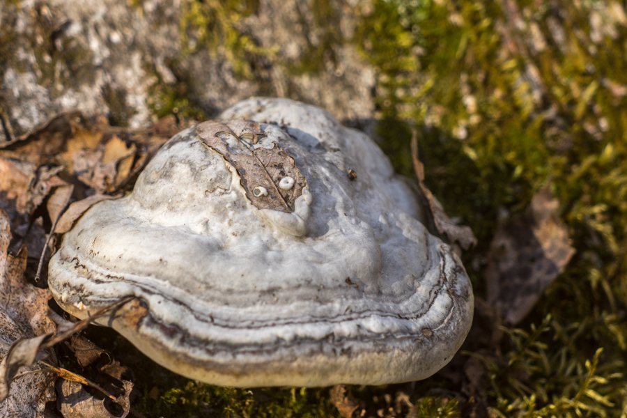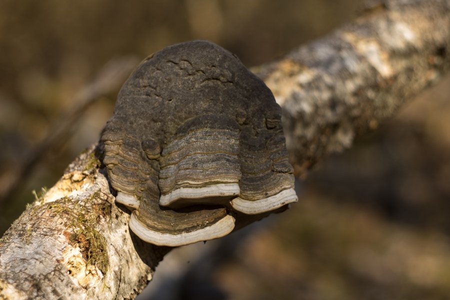 Но я отвлёкся от темы макро фотографии. Гуляя по лесу я набрёл на старый ствол берёзы, который лёг поперёк ручья. На нём была целая колония трутовиков. Конечно, я не мог пройти мимо.