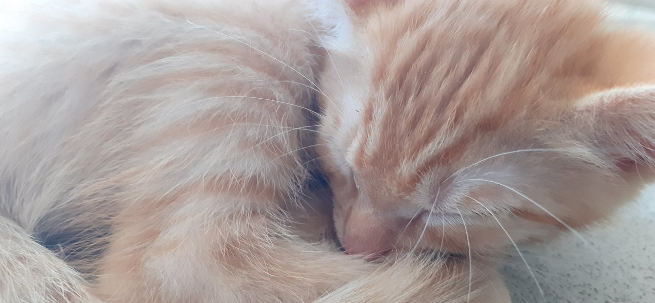 My first thought was an earlobe, no, not at all. Maybe it is part of a nose of a cat we see? Then the whole picture would be a cosy sleeping red tabby cat. Maybe, maybe not.