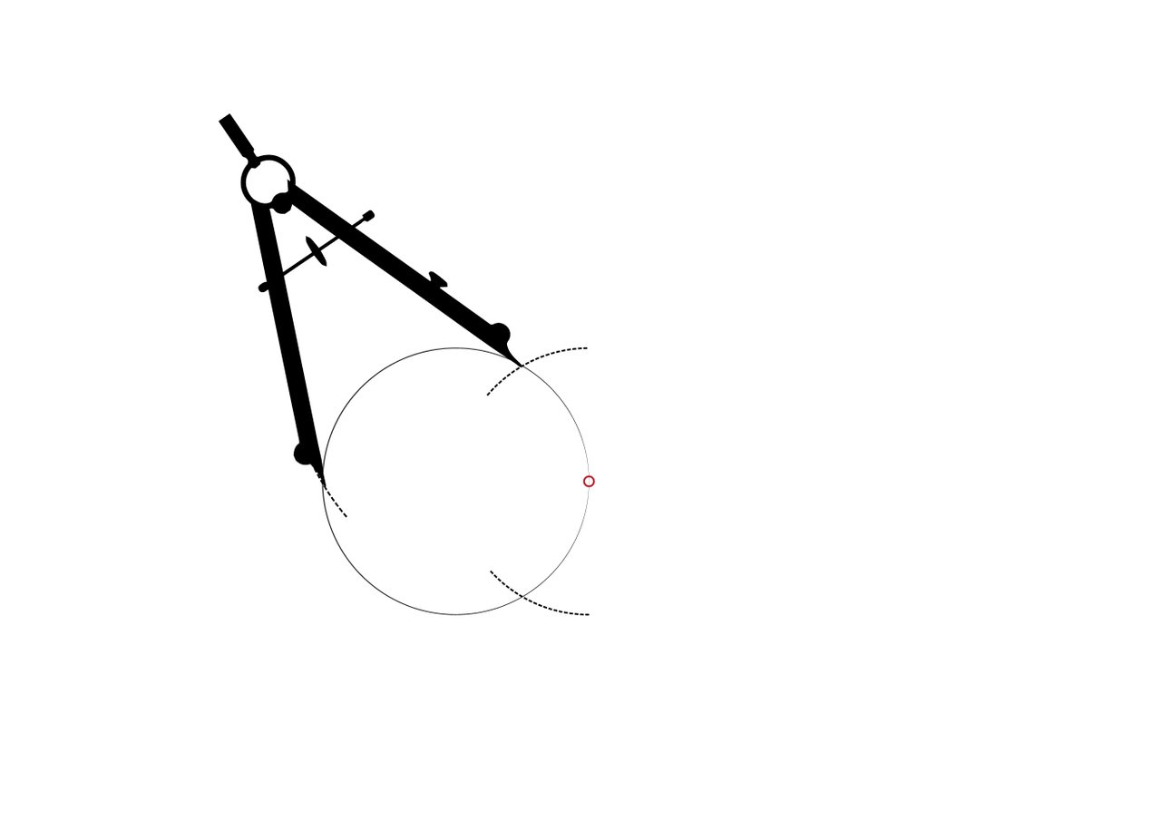 Then, using a drawing compass, measure the radius of the circle and draw a line that intersects the circumference as shown below.