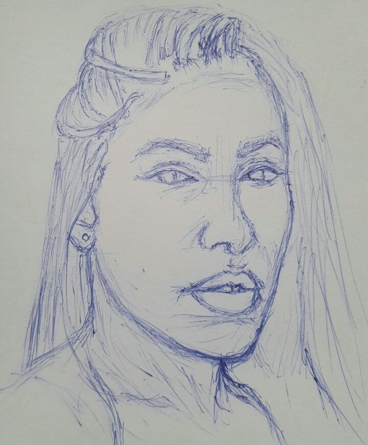 The portrait was done with a blue ballpoint pen on a cardboard paper. I used scribble style to create this piece.
