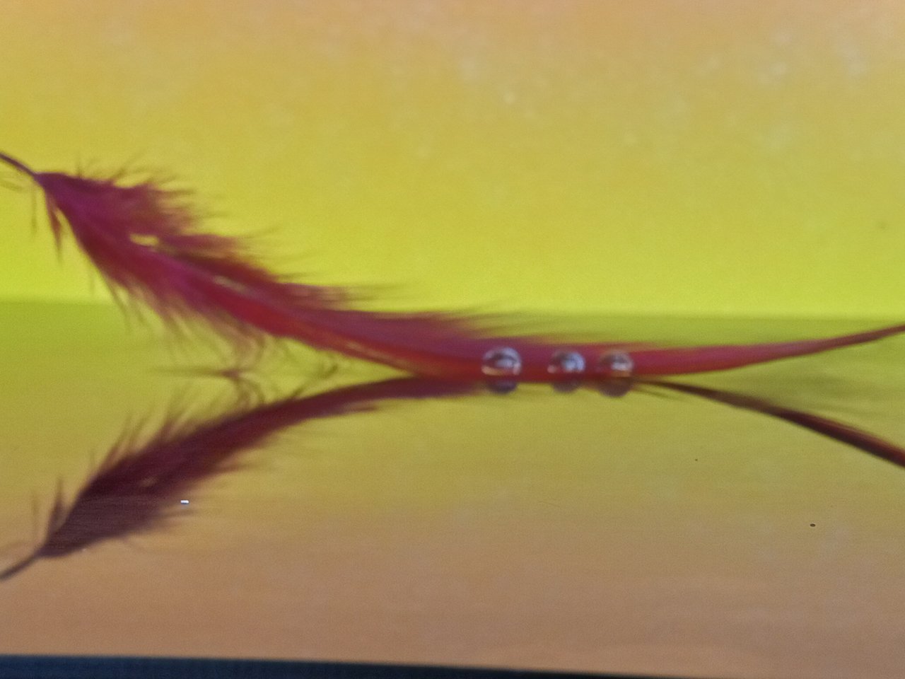 This photo is my creation today, I took some miniature objects such as feathers that had been colored, glycerin liquid that I injected onto them, then I took pictures from various sides (angel)