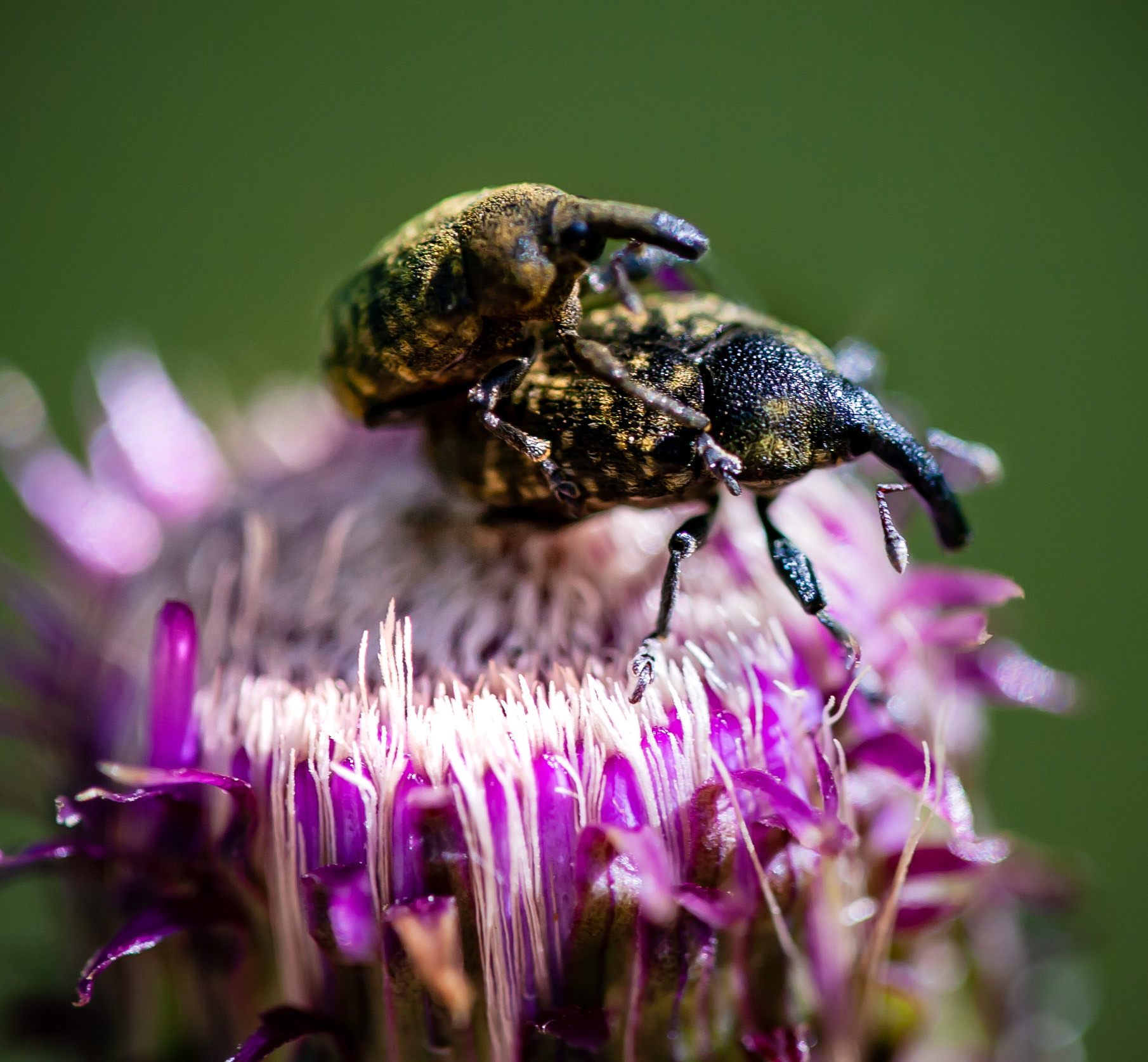 На колючем цветке чертополоха парочка самозабвенно занималась друг другом, не обращая внимание ни на что и ни на кого, даже на фотографа с огромной черной камерой. Этим двум друзьям нужны были только они сами. Сделав поскорей несколько кликов, я ушел чтобы им не мешать делать то, что они делали. Я имею в виду, делать равновесие в природе -- это великая миссия. Плодитесь и размножайтесь и будьте счастливы, могло бы быть написано в Библии, если бы не ошибки переписчиков...