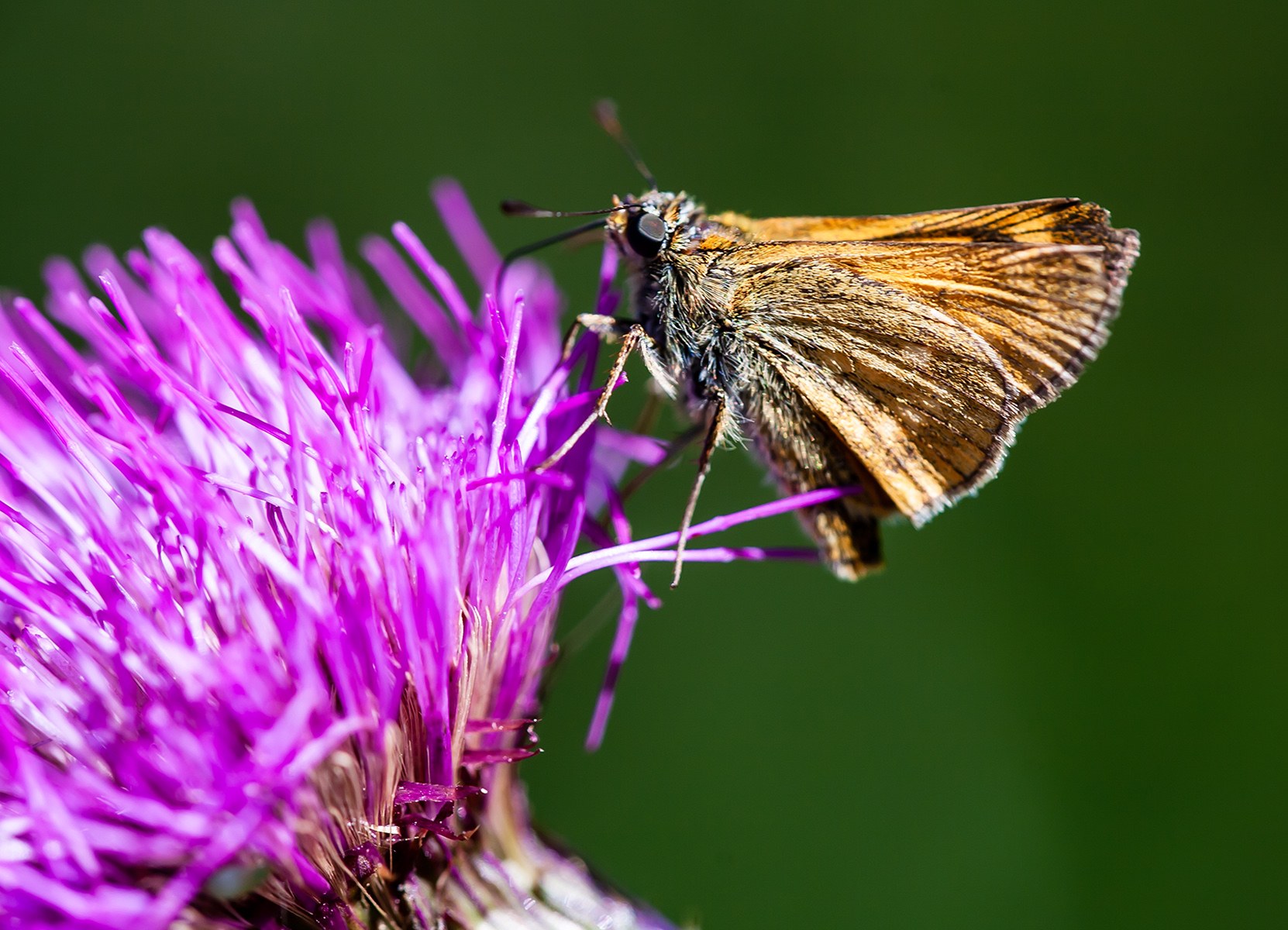 Moth on a thistle flower. / Moтылек на цветке чертополоха.