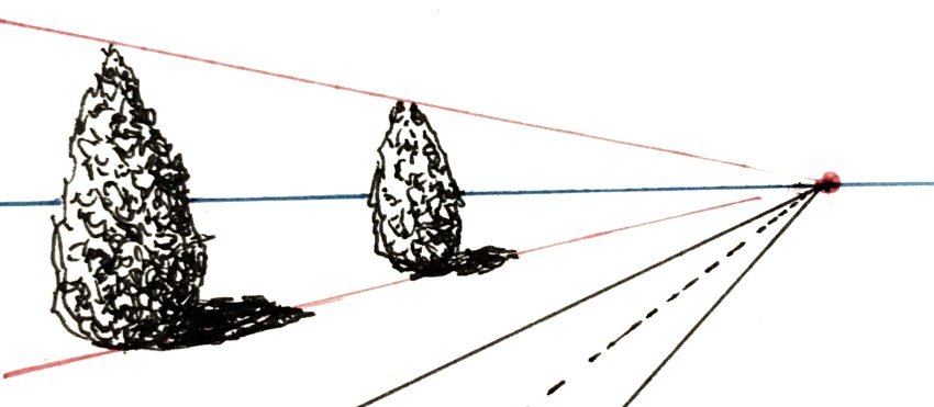 When drawing similar objects, if one is smaller - the observer sees it as being far.