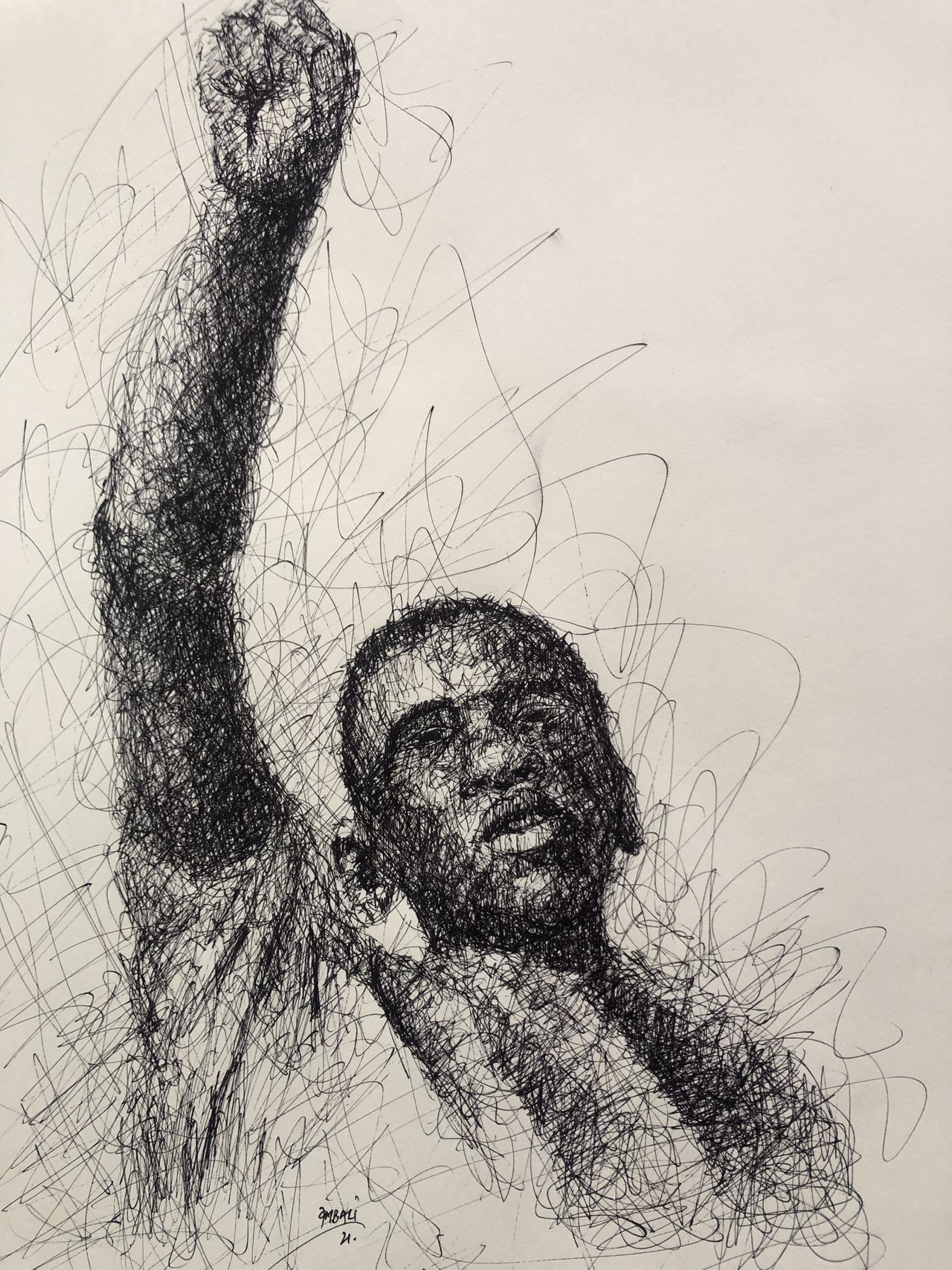 For scribbling, it's just about mounting layers upon layers until the right or desired value or tone has been achieved. Scribbling is not so hard like people think it is, it's just technical and one has to be patient with it.
