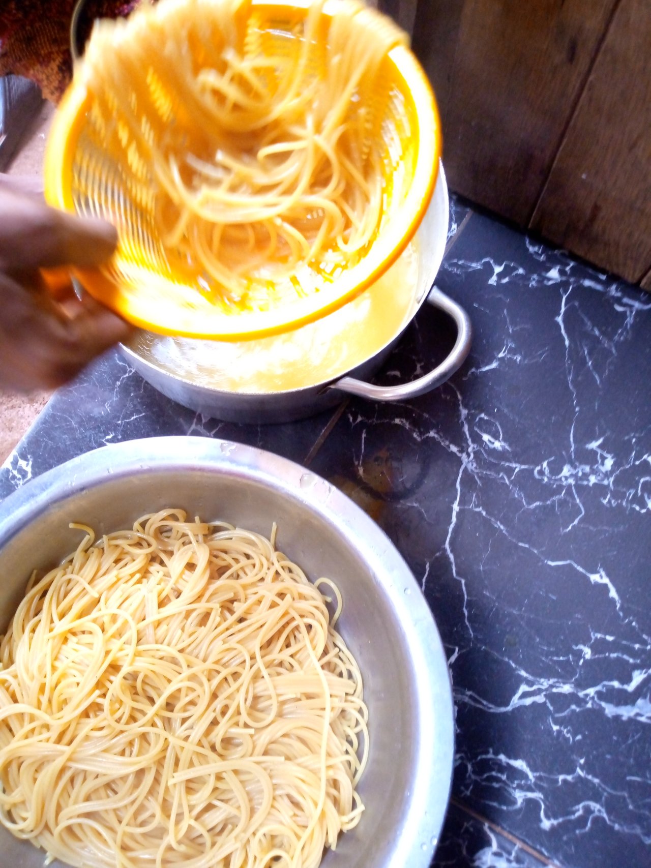 - After that you allow your Spaghetti get done because you won't cook it again.