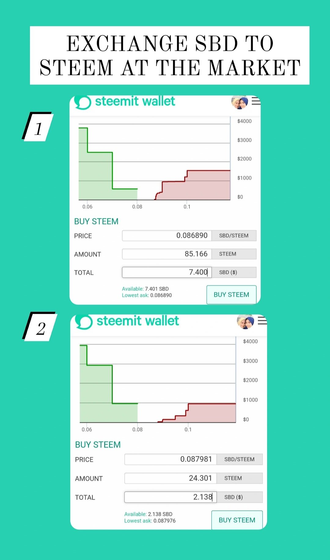 Before doing the power up, I first divided the 2 SBD in my wallet. The reason is because I really need it as preparation and savings for the time I need it later. The remaining 55% SBD in my wallet then I exchanged it on the market with STEEM. then I just do a power up. Here's the history of the power ups I've done since joining #club5050