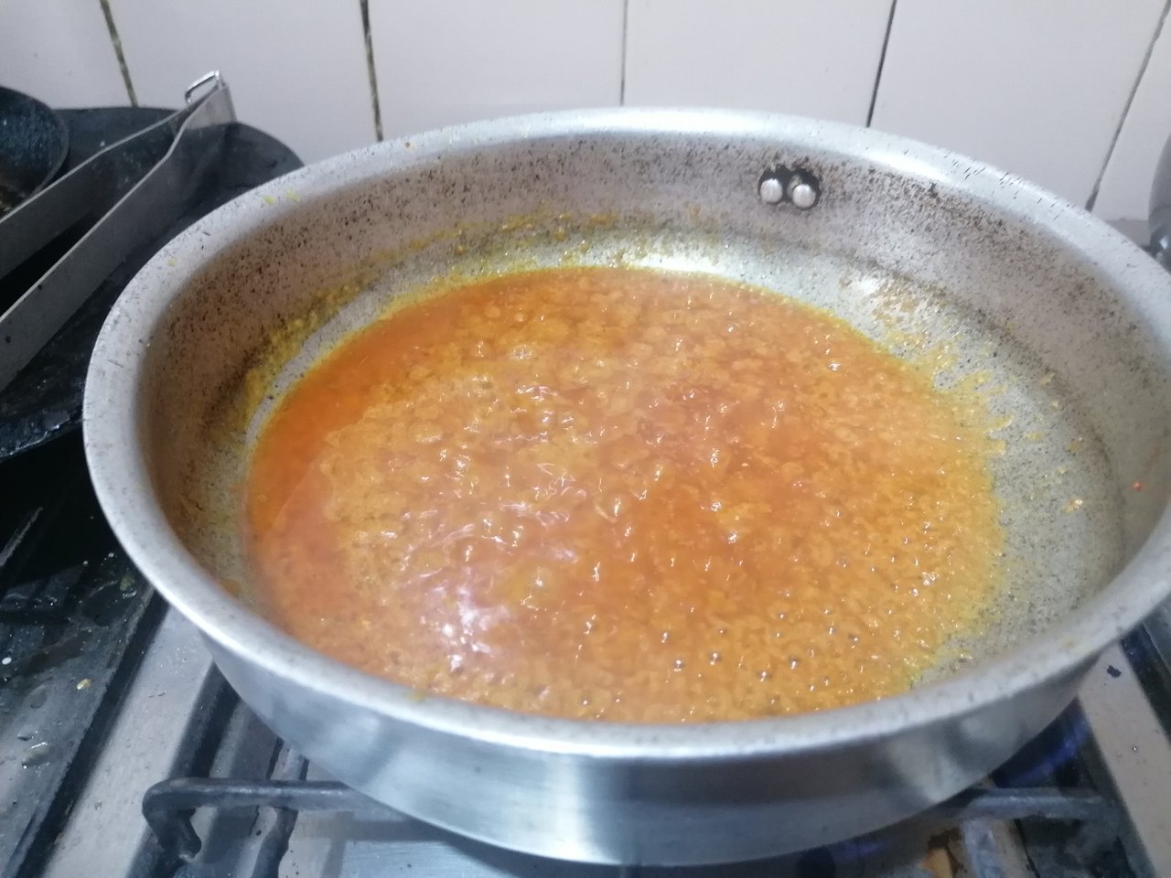 - Add Yougart and fried onions in blender and make its padyeto the pan and fry it until its color changes and oil comes up to the pan.