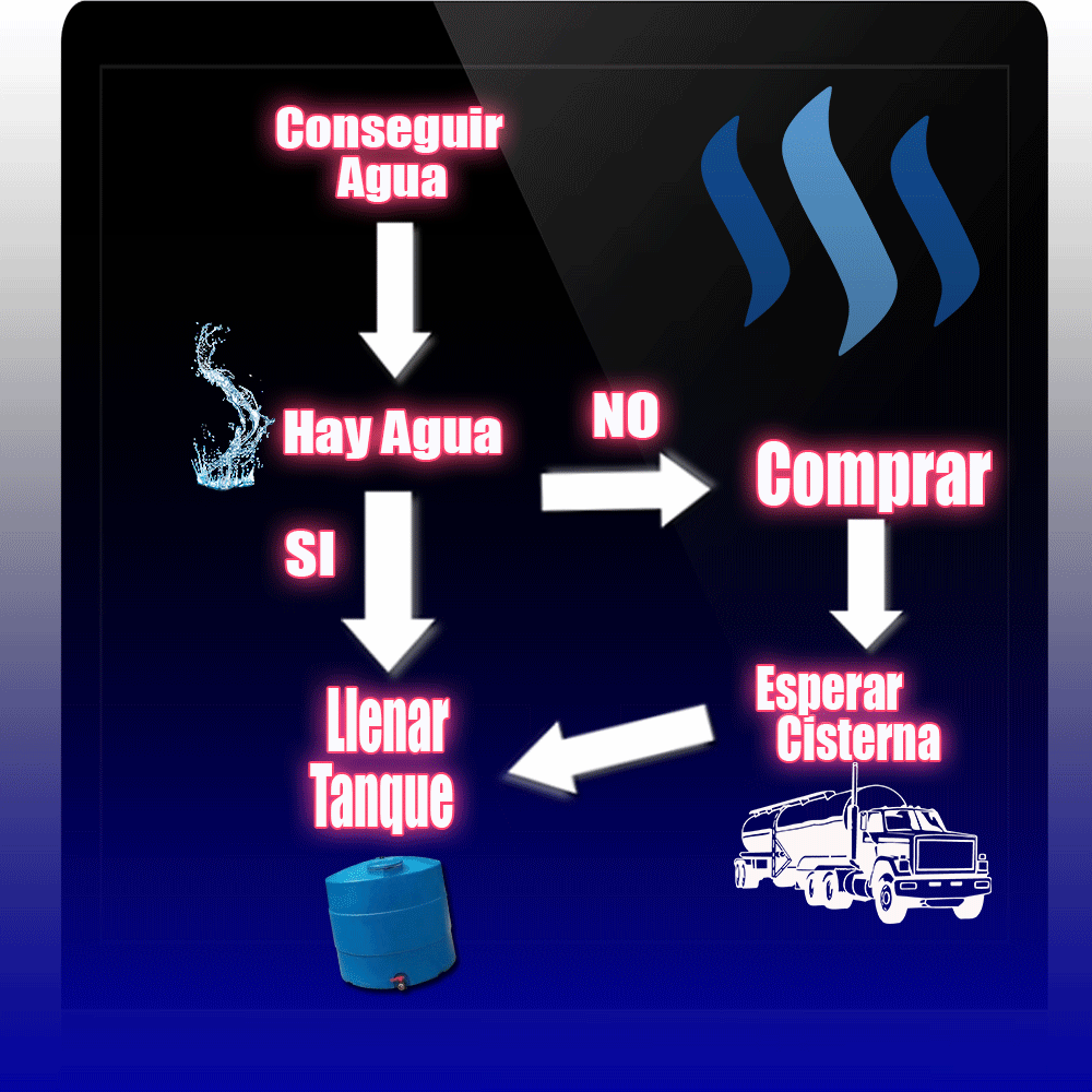 Ejemplo 2: en este siguiente ejemplo nos vamos a la opción cuando nos quedamos sin agua, que en casa sucede constantemente, entonces que hacemos vemos si hay se llena el tanque, de lo contrario se debe llamar a un camión cisterna, y comprar agua para así poder llenar el taque.