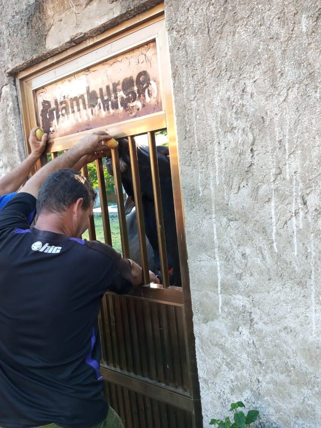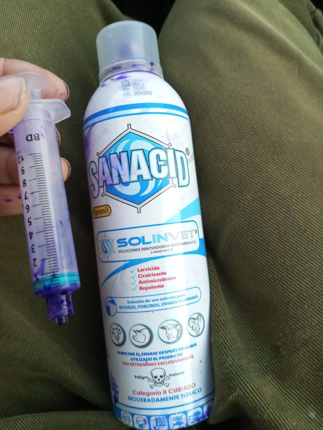Me tocó buscar ayuda para ir a curar al toro, y fue de esta manera que le pudimos colocar el producto. A través de la puerta lo hicimos llegar con mango, el se acercó y se aprovechó de aplicar la dosis. Fue un gran susto el que nos hizo pasar el toro.