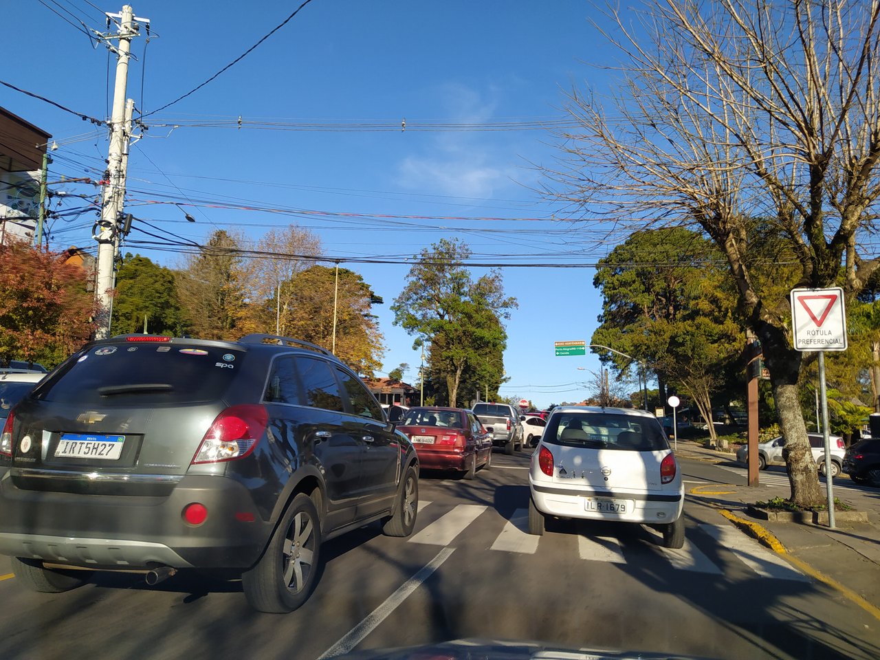 De lá, fui até o Parque do Lago Negro, na rua Vinte e Cinco de Julho, no bairro Planalto, e levei outra passageira até a rua João Petry, no centro. Depois, recebi outra chamada na rua Prefeito Nelson Dinebier, e levei mais uma passageira até o Hard Rock Cafe, na rua Wilma Dinebier, no bairro Belvedere.