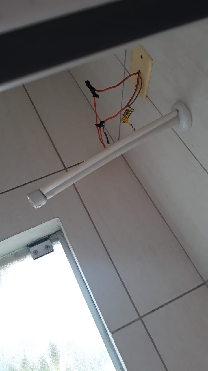 Conseguimos montar os guarda roupas, e colocar o varão para a cortina, mas o trabalho mais complicado foi instalar o chuveiro, pois não sabiamos se era 110 ou 220, um amigo que entende disso nos ajudou e montou, estava fácil para ele. Até trocou o modo de fiação que estava com fita isolante e colocou conectores.