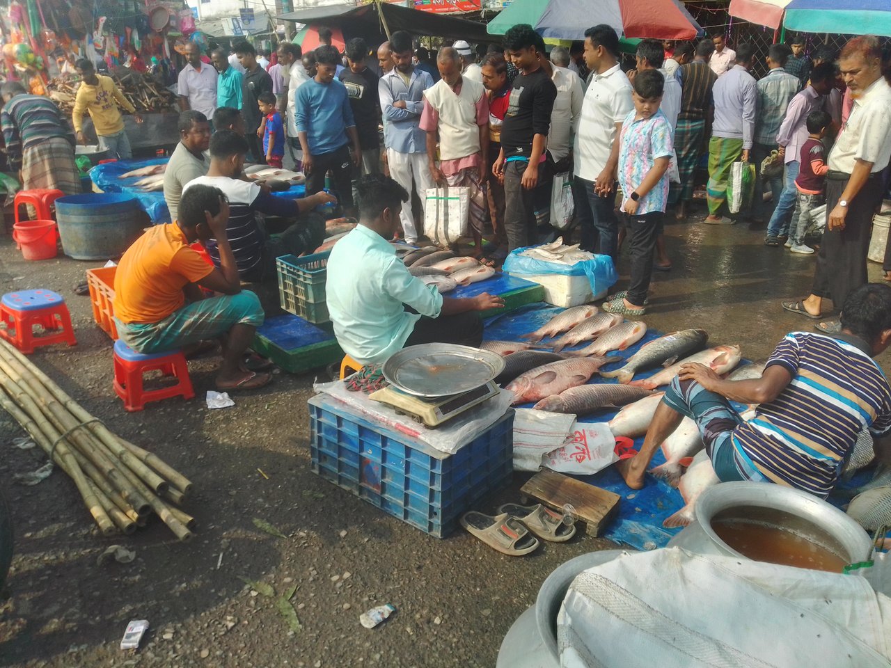 Then I left for the market. Dupchanchia market is about 6 km from our house. I left home at half past nine in the morning. I went there and photographed them. I went to the fish market today and saw a lot of big fish. Such a big fish is not seen in the market at this time. But today I am very happy to see such a big fish.