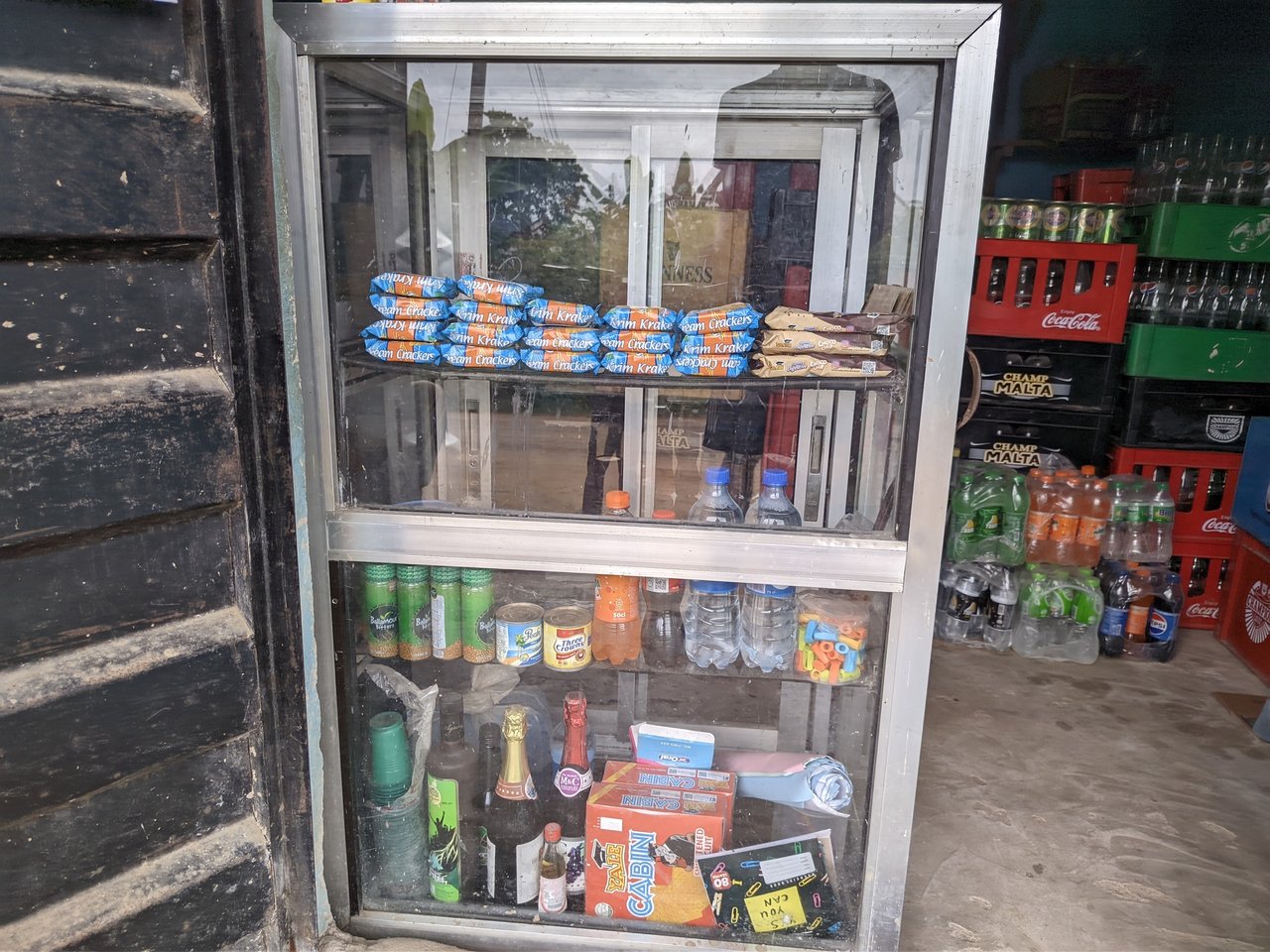 There's a section for a freezer to contain drinks as most customers may be in need of cold or chilled drinks. The freezer helps serve this purpose and it's interesting to know that they purchase ice blocks to cold their freezer in the absence of constant light in the area.
