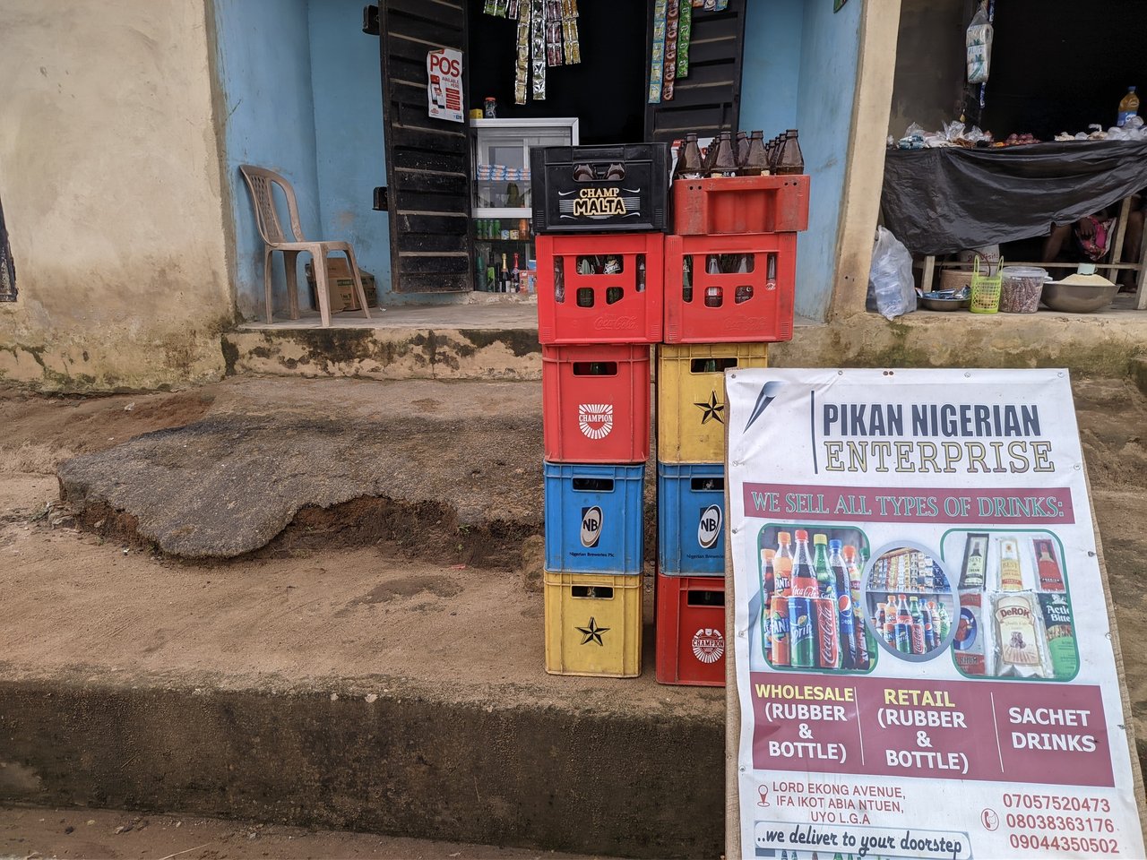 This place is identified by a business name called Pikan Nigerian Enterprise. It's more professional by this name even though it's in the local community. It has a small flex by the roadside as an advertisement to passers-by and road users that drinks are sold in this place, both wholesale and retail.