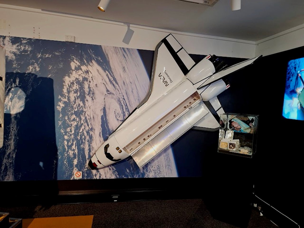 • Exhibits including spacesuits, models of spacecraft, and interactive displays.