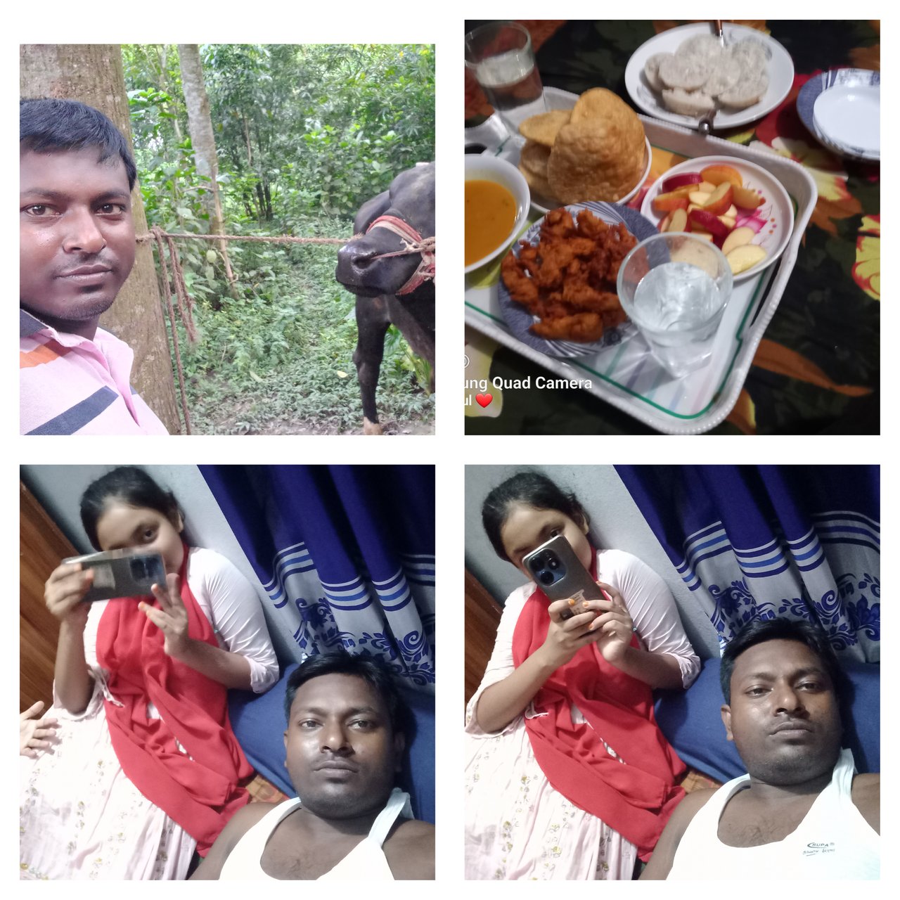 I told my father-in-law's house, after eating and drinking, I went to the room to sleep. Me and my wife get ready to sleep together. And watching something online on mobile at ten o'clock. I wrote a diary game and fell asleep.