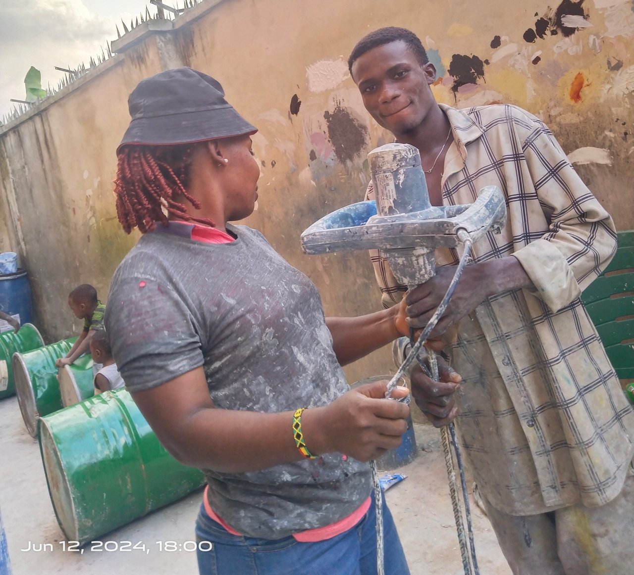 The job was for me to produce 5 buckets of acrylic paint for a client and my supposed boss has collected the contract and maybe because he has another job at hand or he is not available in town, he asked me help him produce it and deliver it to the location.