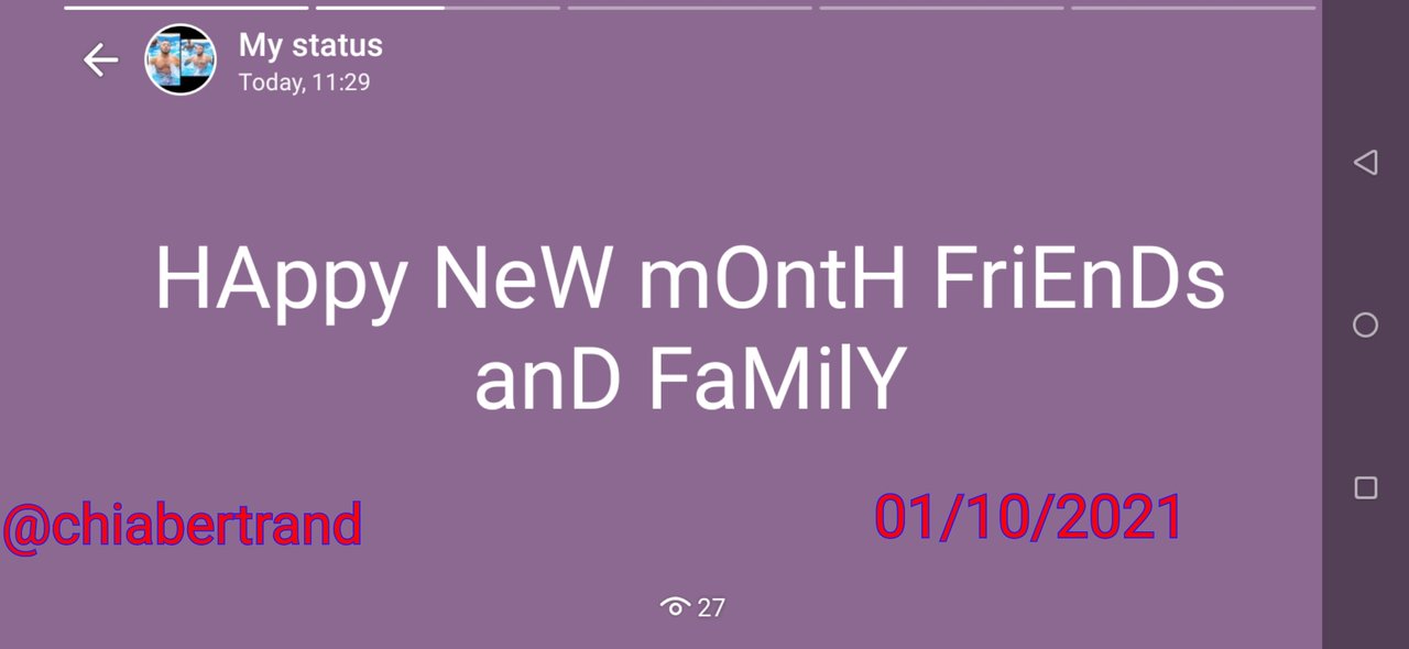 Today is the 01/10/2021 which is a new month, so I thought it wise to wish my family and friends a happy new month as a sign of appreciation of their love towards me and to also show them I love them too