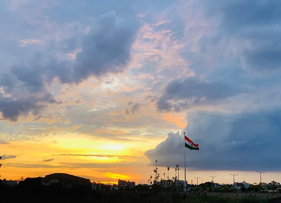 How are you ☺️ I think so you all are enjoying your day by peace ✌️.So today I am here to share some beautiful scene of sunset with my national flag 🇮🇳.