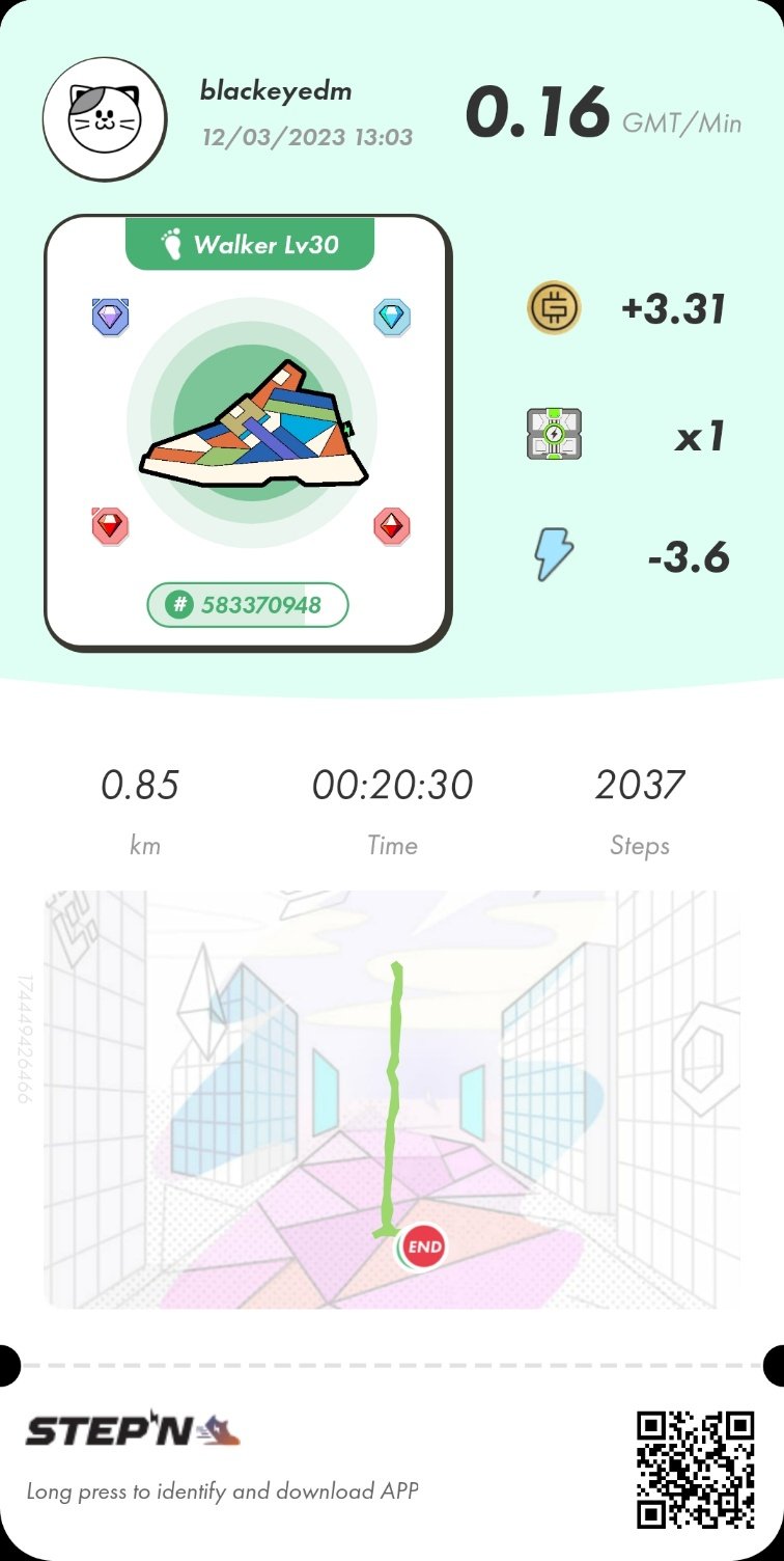 스테픈 걷기 운동 일지) 23.03.12 일요일steemCreated with Sketch.blackeyedm (86)in Korea • 한국 • KR • KO • 3 years ago (edited) 어제는 오랜만에 오후에 비가 와서 미세먼지를 없애주었죠^^ 그래서 밤에 걷기 운동할 때~~ 마스크 안 써도 꽤 괜찮더라고요ㅎㅎ [23.03.12 일요일] Distance : 5.69 km Time : 1시간 45분 Steps : 11,644 Mining : 17.63 GMT 23.03.13-2 . #kr #zzan #stepn #stepnkr #m2e #aaa #dblog