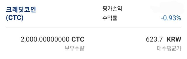 [기록][CTC 바낸 상장 기원] 20240726 크레딧코인(CTC) 추매, 평단 699, 수익률 -2%