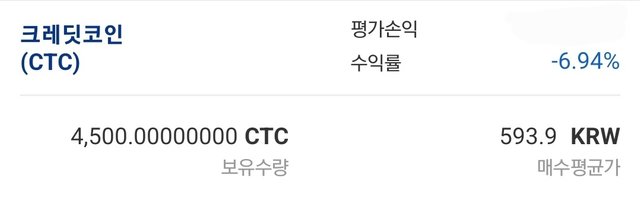 [기록][CTC 바낸 상장 기원] 20240802 크레딧코인(CTC) 추매, 평단 689, 수익률 -5%