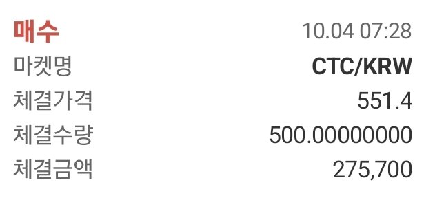 [기록][CTC 바낸 상장 기원] 20240927 크레딧코인(CTC) 추매, 평단 600, 수익률 5%