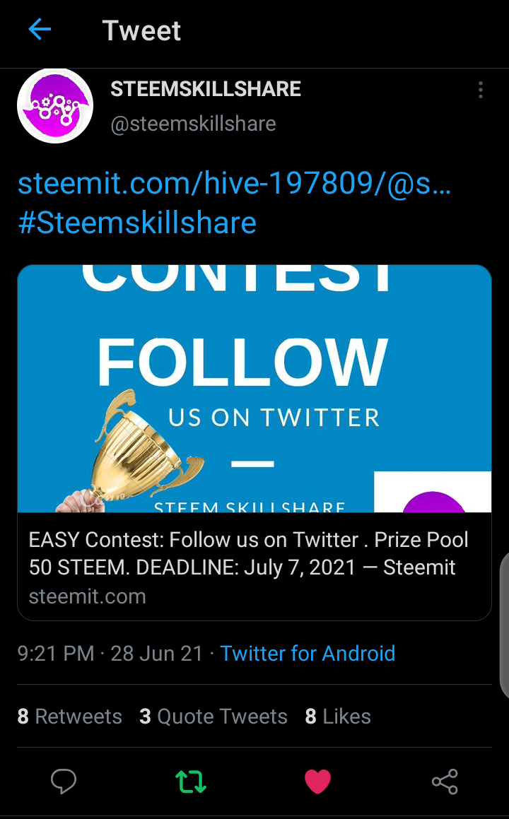I follow the link to the Twitter page, I then proceed to follow Steemskillshare on Twitter.