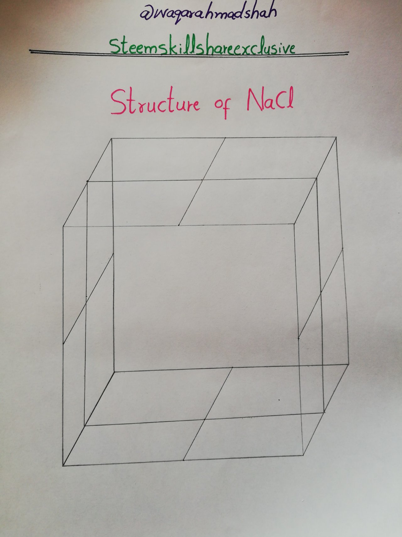 - The skeleton of NaCl structure has been completed. Now, its time to put sodium and chloride ions on this structure. First, we are going to put chloride ions. Draw 5 chloride ions at the corners of lower layer and 5 at the corners of upper layer.