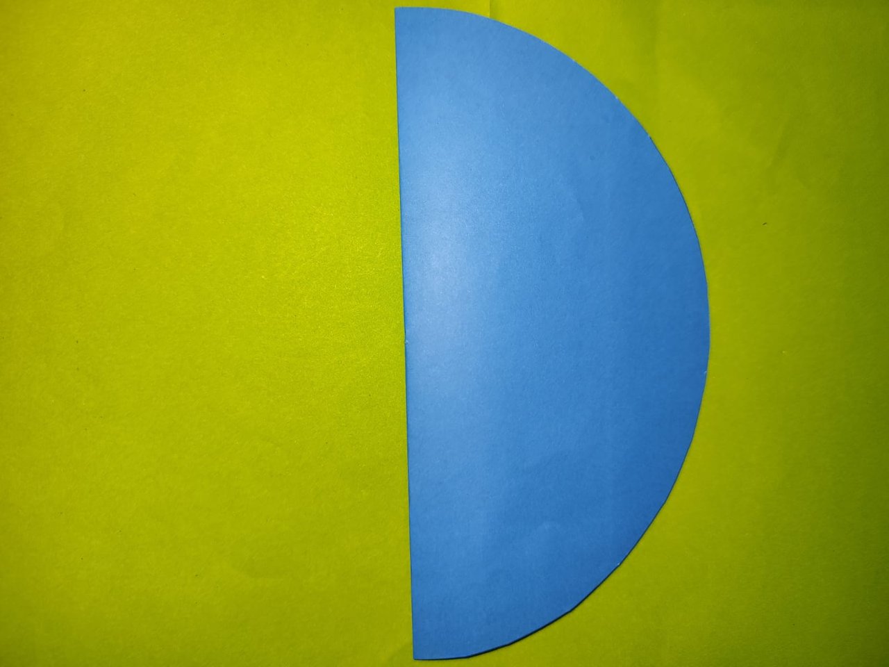 First, I took blue colored A4 paper. I made a circle on the paper with the help of a ruler compass. I used scissors to cut it out after that.