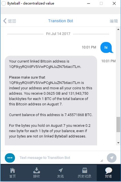 而每月派送量為:每一BTC派發0.0625GByte(Byte為Byteball最小單位、一Gbyte等如100,000,000Byte);已在Byteball錢包的Byte則可獲20%紅利。下一次派送的截止日期是中國時間 8月8日淩晨2時。